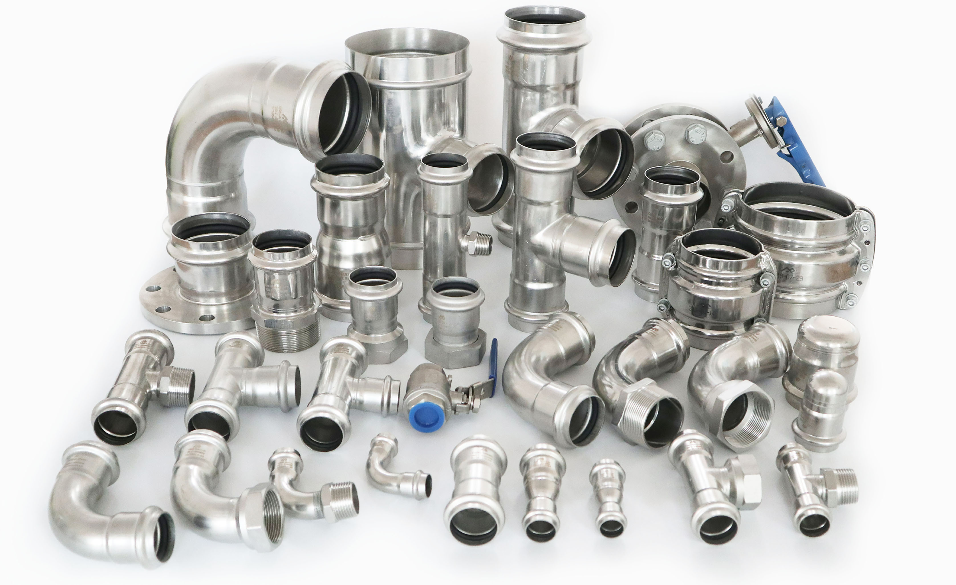 薄壁不銹鋼管材 雙卡壓薄壁不銹鋼管件 抱箍管件系列 溝槽管件系列 焊接管件系列 更多